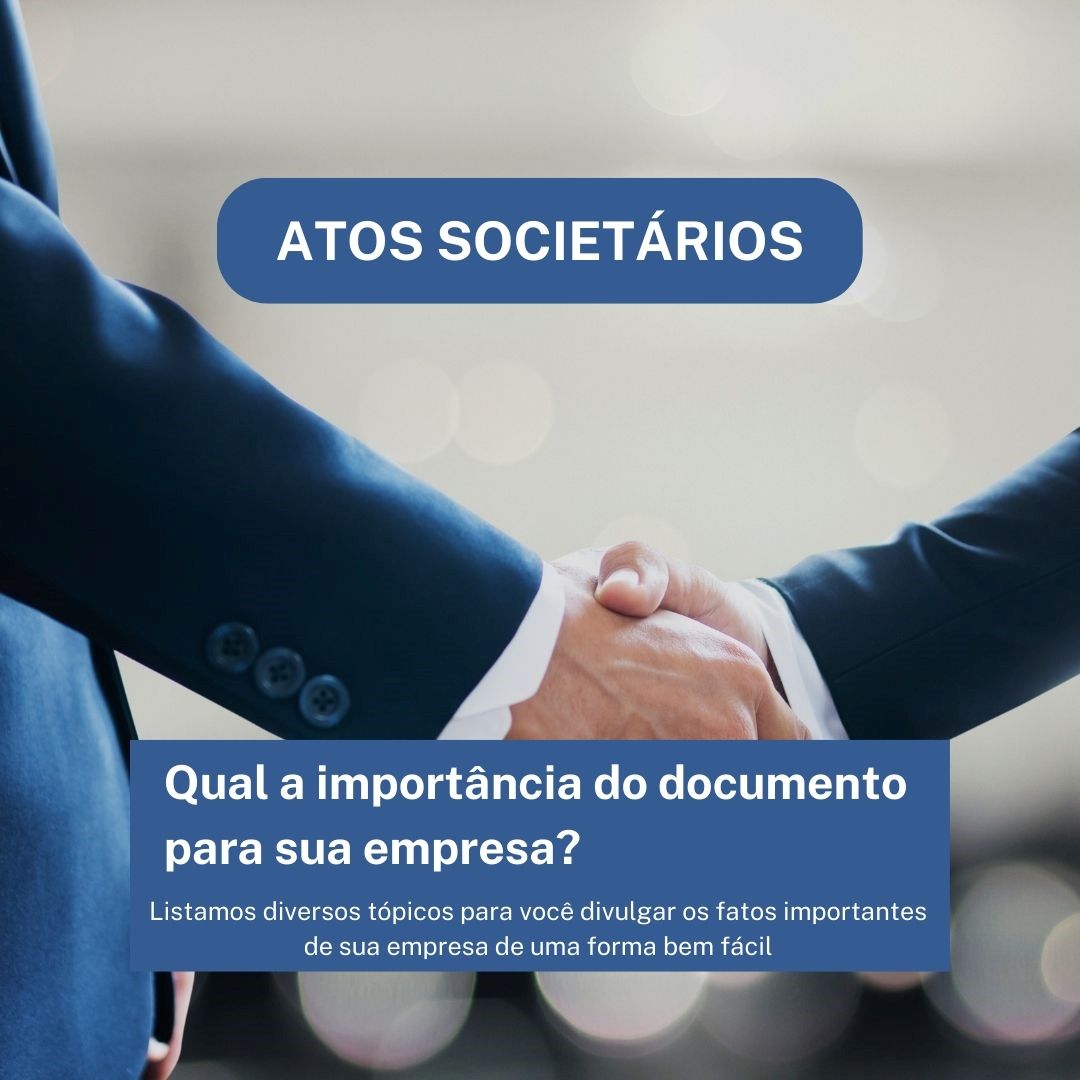Os Atos Societários são de extrema relevância para compartilhar decisões corporativas à sociedade e ao mercado de trabalho. É uma decisão produzida pela deliberação da Assembleia Geral ou pela Administração de uma empresa. Os atos modificativos mais comuns são os que alteram o quadro societário, o endereço da empresa ou de suas filiais, objeto social, aumento ou redução do capital social, razão social ou até mesmo transformam o tipo jurídico da sociedade.